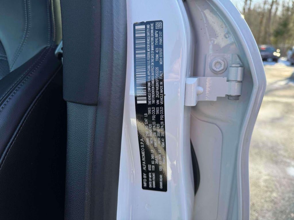 Alfa White 2023 Alfa Romeo Stelvio Veloce AWD 8-Speed Automatic I4 Aluminum Interior Trim, Aluminum Steering Column Mounted Paddle Shifters, Apple CarPlay/Android Auto, Automatic temperature control, Body Color Appearance Kit, Brake assist, Dark Miron V Scudetto Grille, Electronic Stability Control, Front dual zone A/C, Headlight cleaning, Heated steering wheel, High intensity discharge headlights: Bi-Xenon, Leather steering wheel, Limited Slip Differential Rear Axle, Memory seat, Navigation System, ParkView Rear Back-Up Camera, Power Adjust 8-Way Driver Seat, Power Adjust 8-Way Front Passenger Seat, Power Adjustable Bolster, Power Liftgate, Power moonroof, Quick Order Package 22S Veloce, Radio: AM/FM/HD 8.8'' w/Navigation, Rear fog lights, Sport Leather Seats, Sport Rear Diffuser, Wheels: 20'' x 8.5'' Sport 5-Hole Aluminum.Recent Arrival!